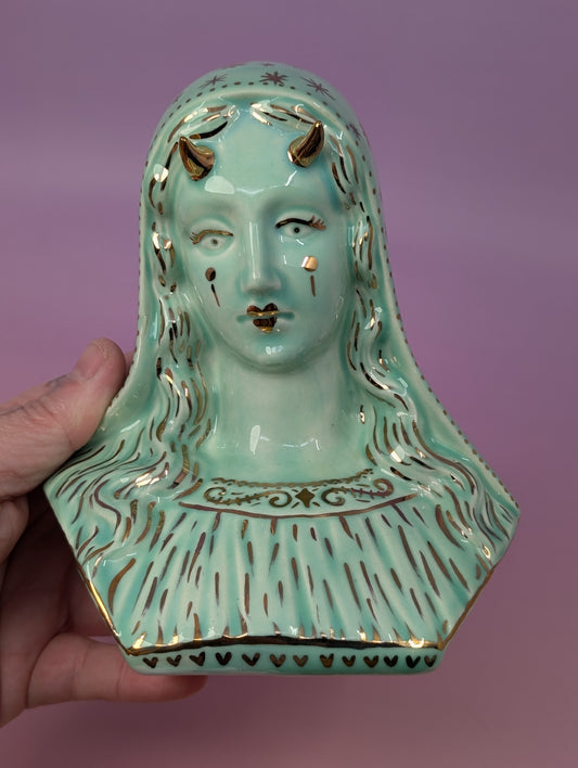Horny Mary Ashtray with Gold Glaze