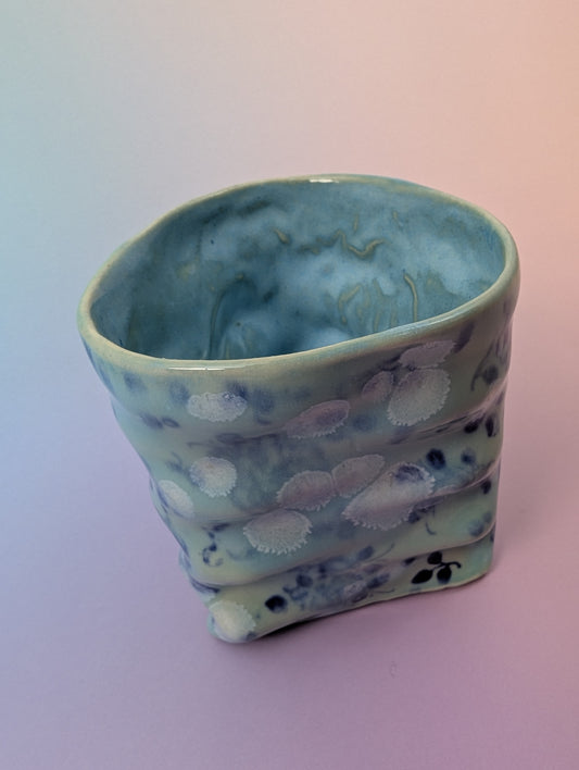 Get In Loser Handle-less Teacup - Cratered Black and Green with Floating Teal Inside