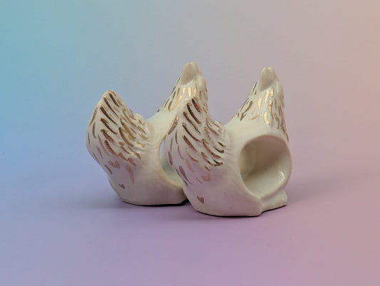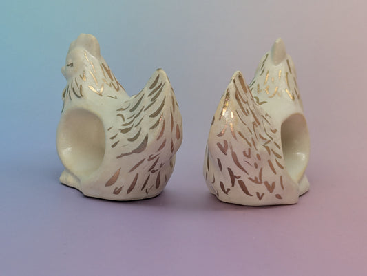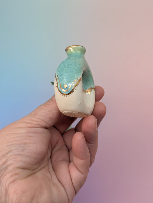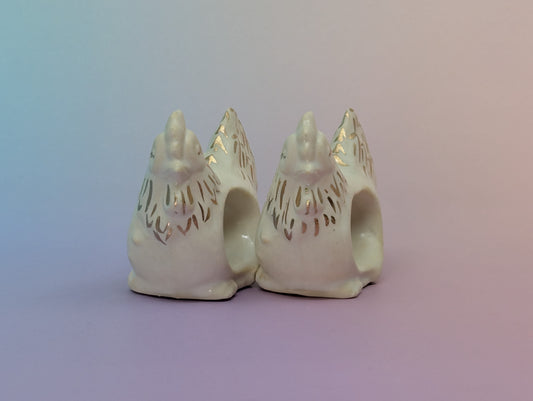 Teal & Marshmallow Napkin Ring Vases W/Gold Enamel Accents