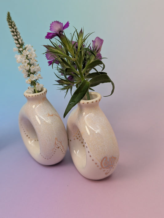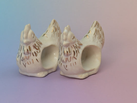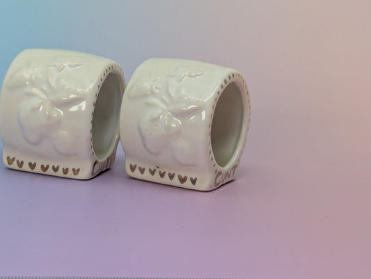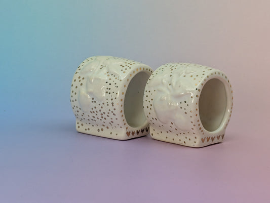 Cunty Bud Vase Napkin Rings w/ Gold Enamel Accents