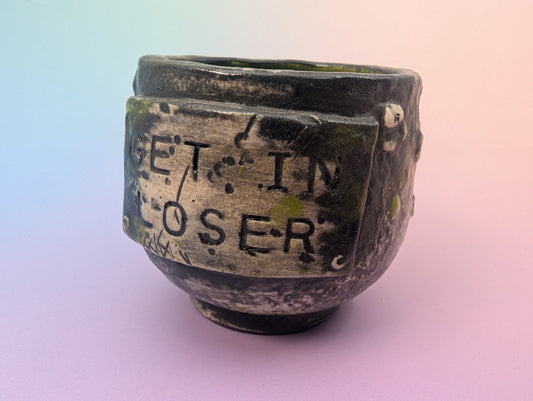 Get In Loser Teacup - Cratered Black Mixed Finish with Alien Green Inside