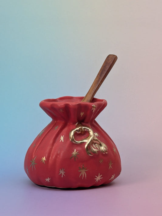Salt Pouch/Vase with Stars & Wooden Spoon