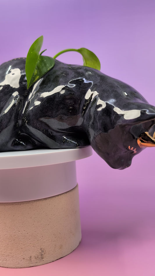 "Witchy Babe" Cauldron Matchstick Holder with Gold Glaze