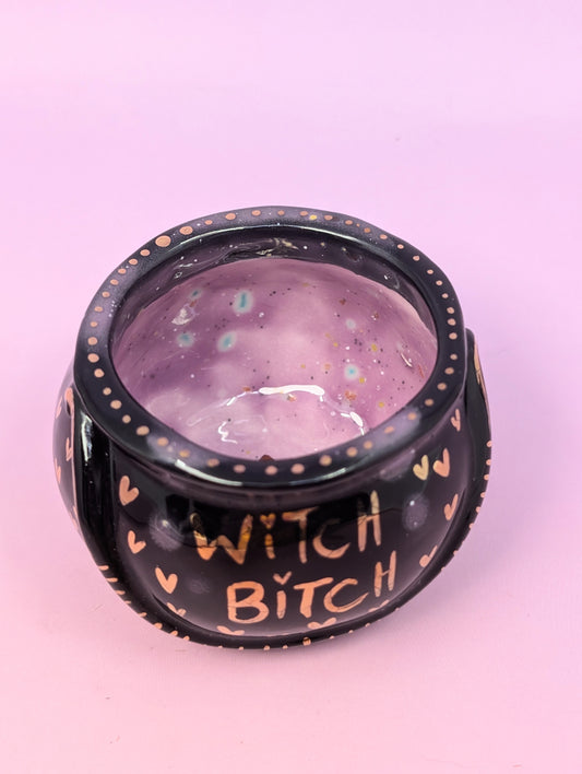 "Witch Bitch" Cauldron Matchstick Holder with Gold Glaze