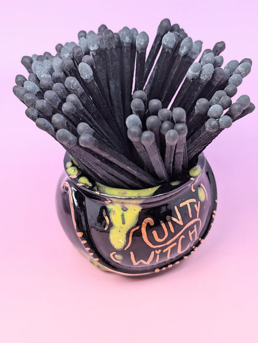 "Cunty Witch" Cauldron Matchstick Holder with Gold Glaze