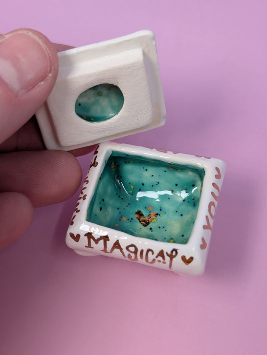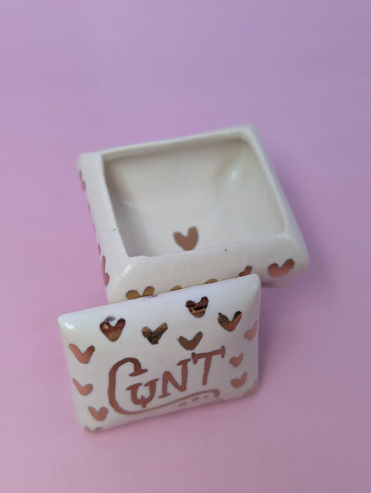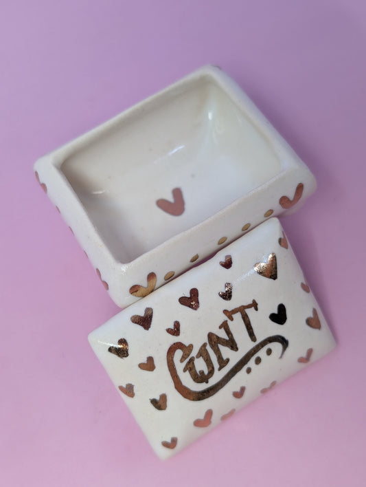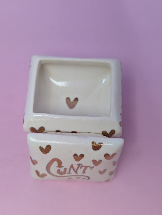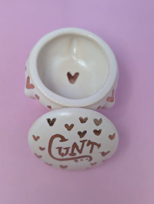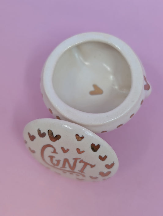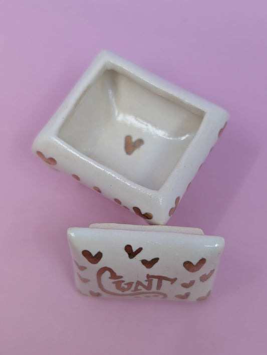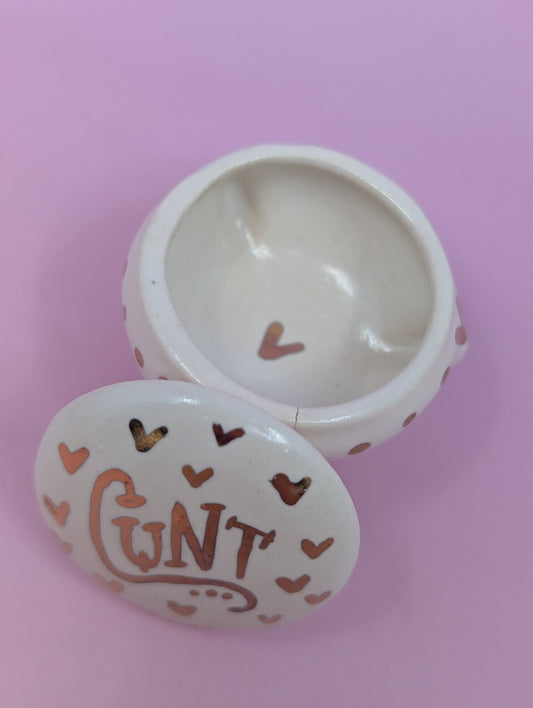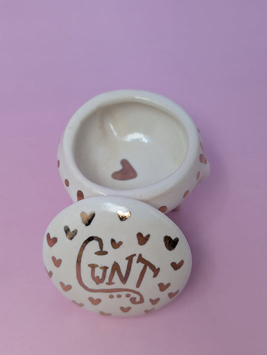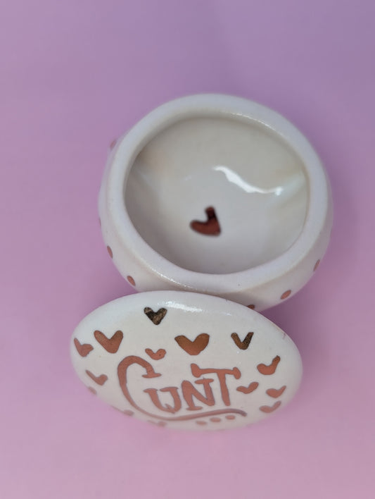 Cunty Frilled Heart Pillbox with Silver Glaze