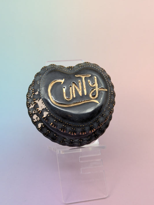 Vintage Pitcher Bud Vase w/Flowers "Cunt"