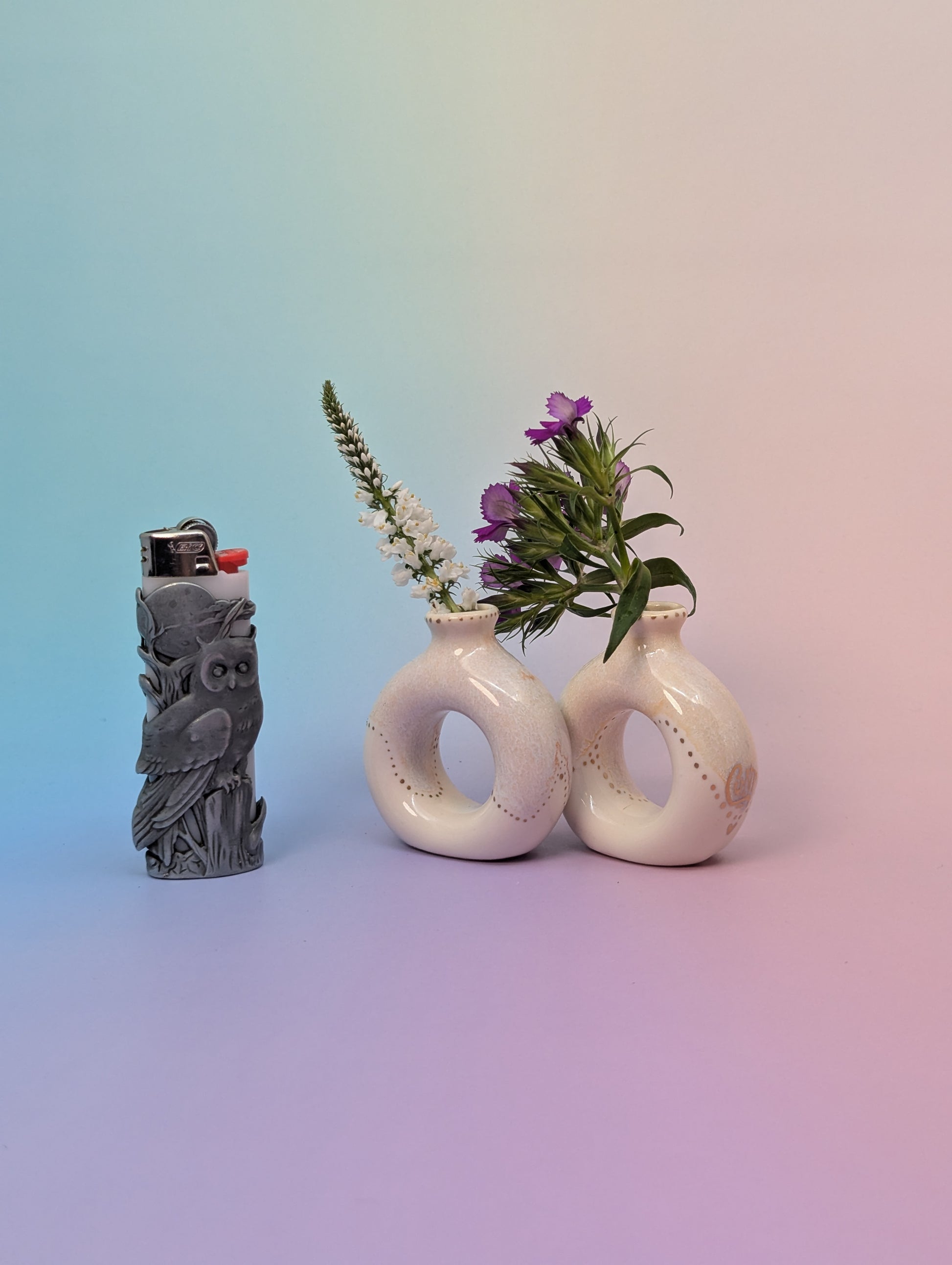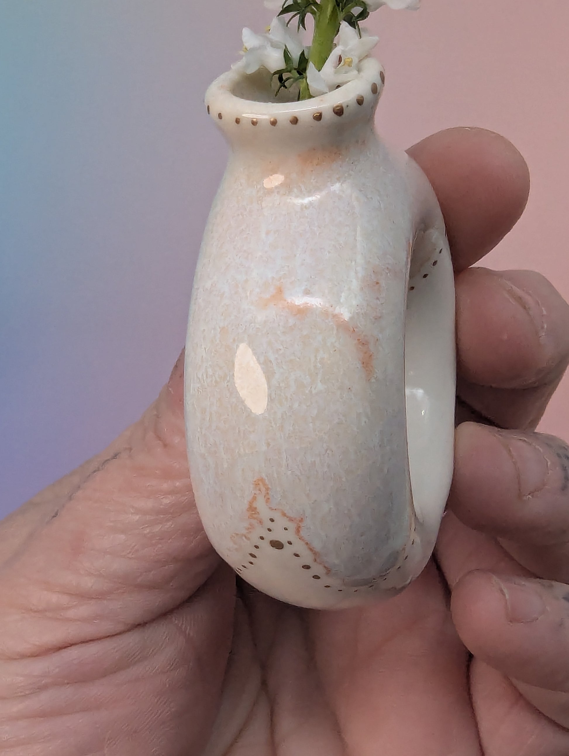 Cunty Bud Vase Napkin Rings w/ Gold Enamel Accents