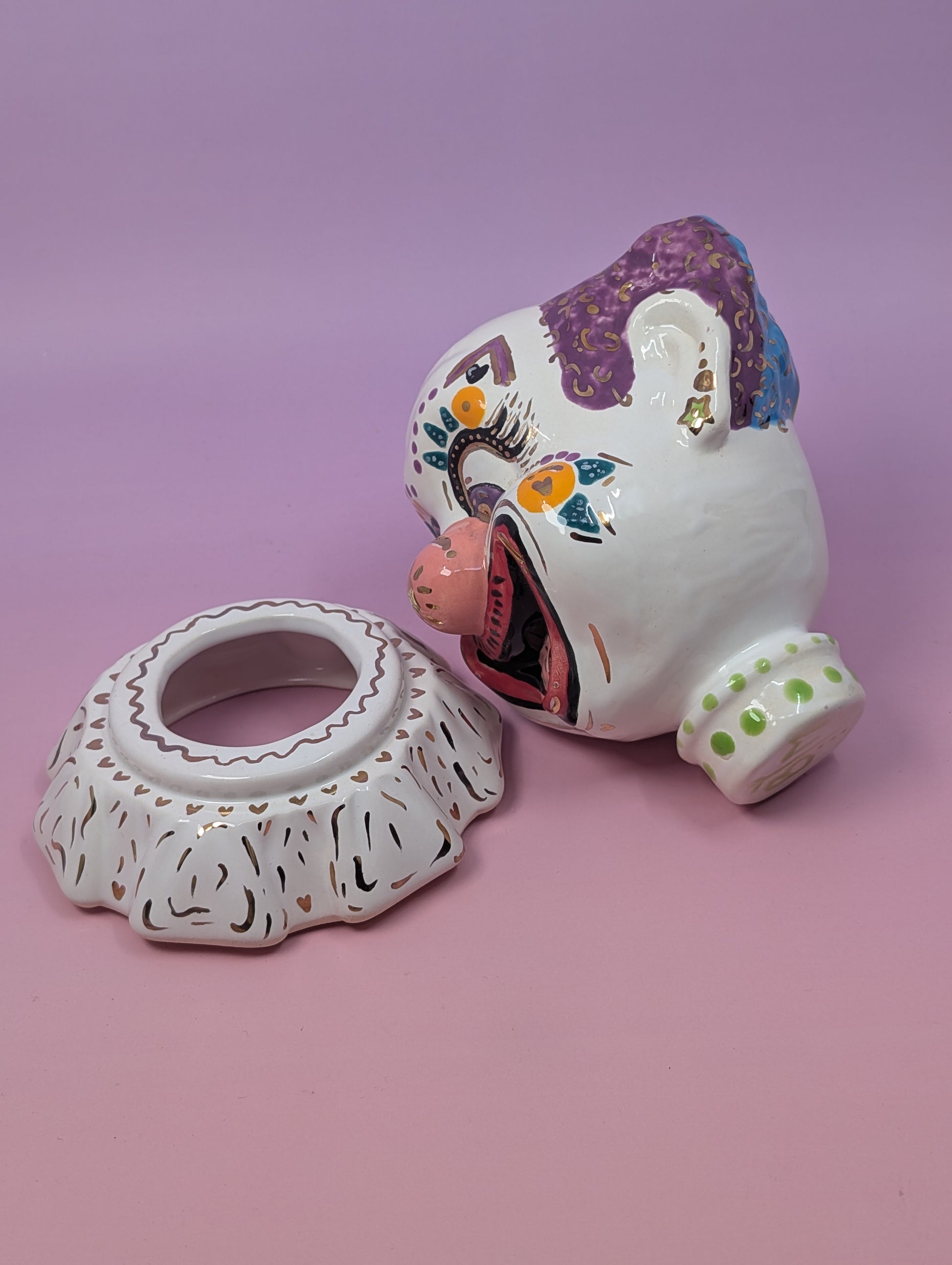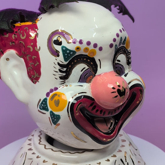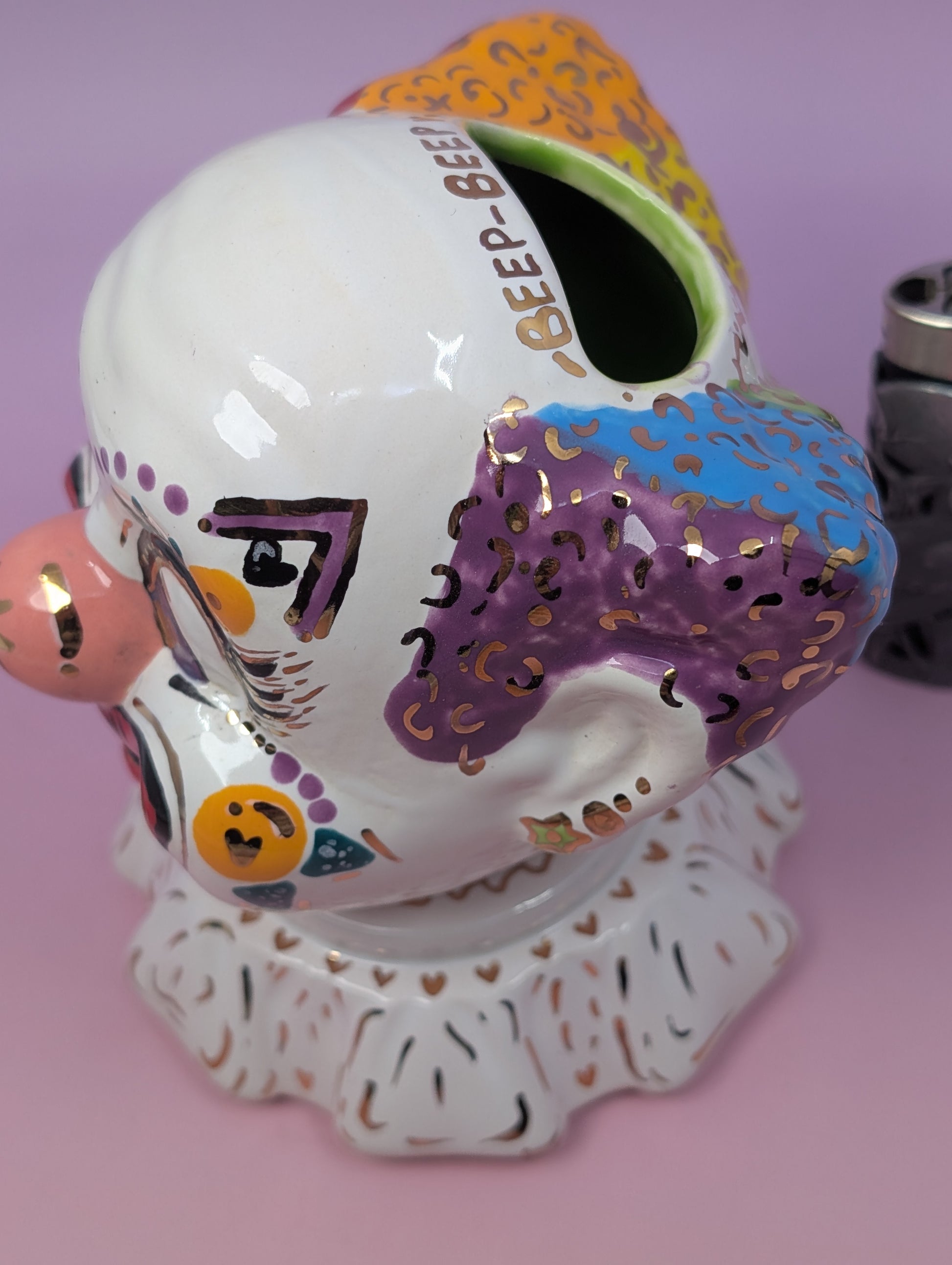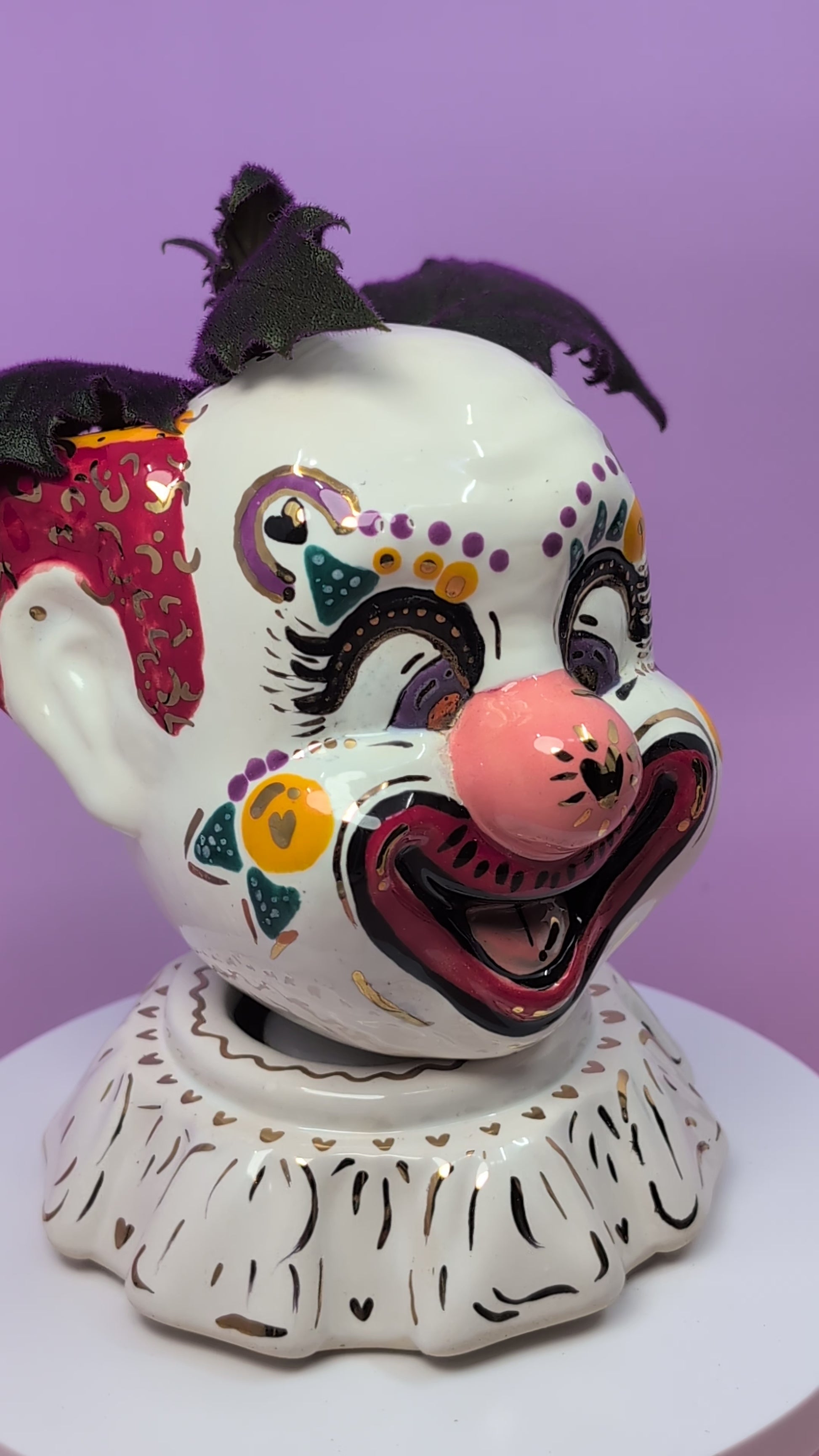 Two-piece golden clown bud vase or vase – he’s bright, bold, and beautiful. Beep-beep.