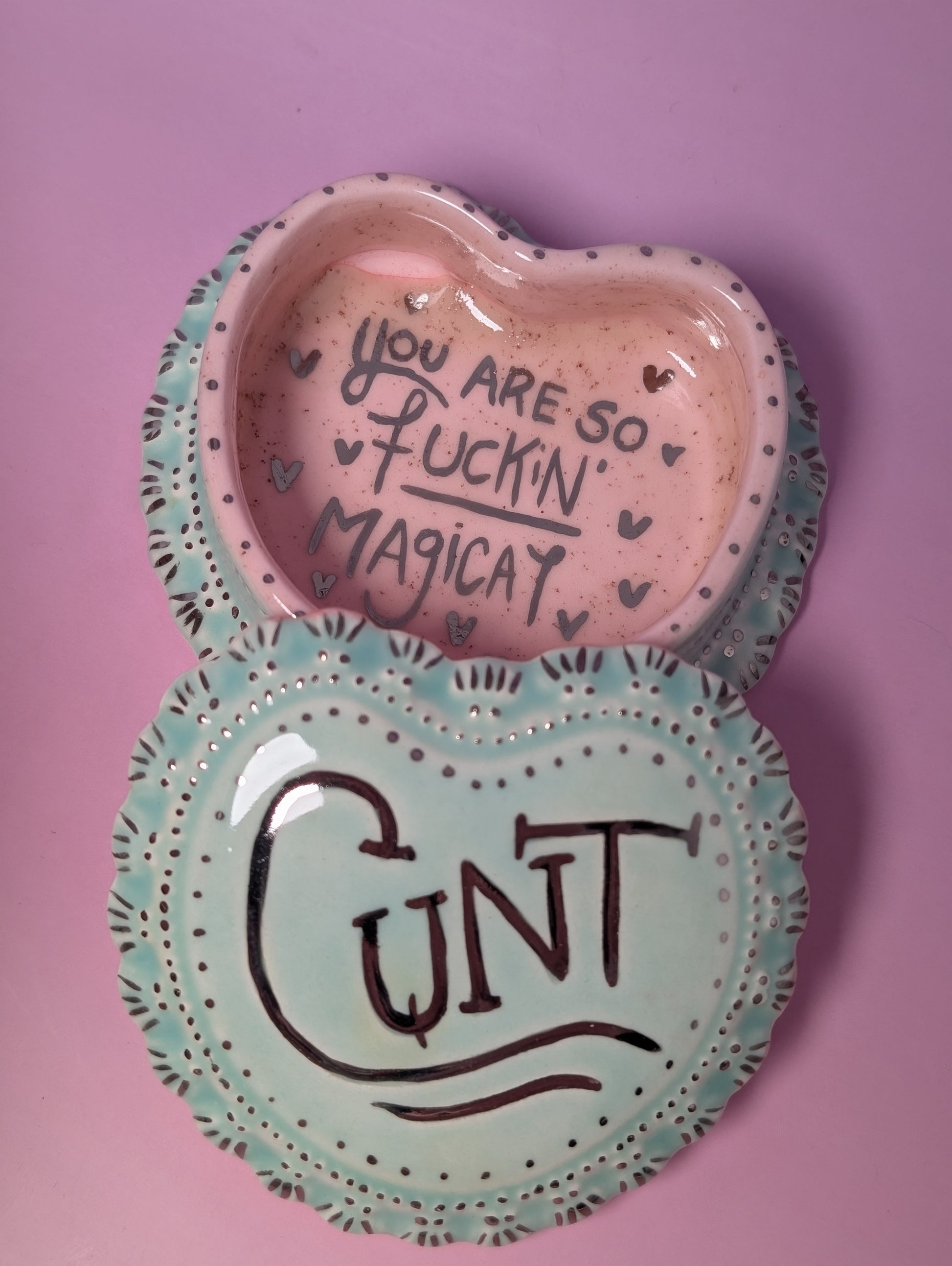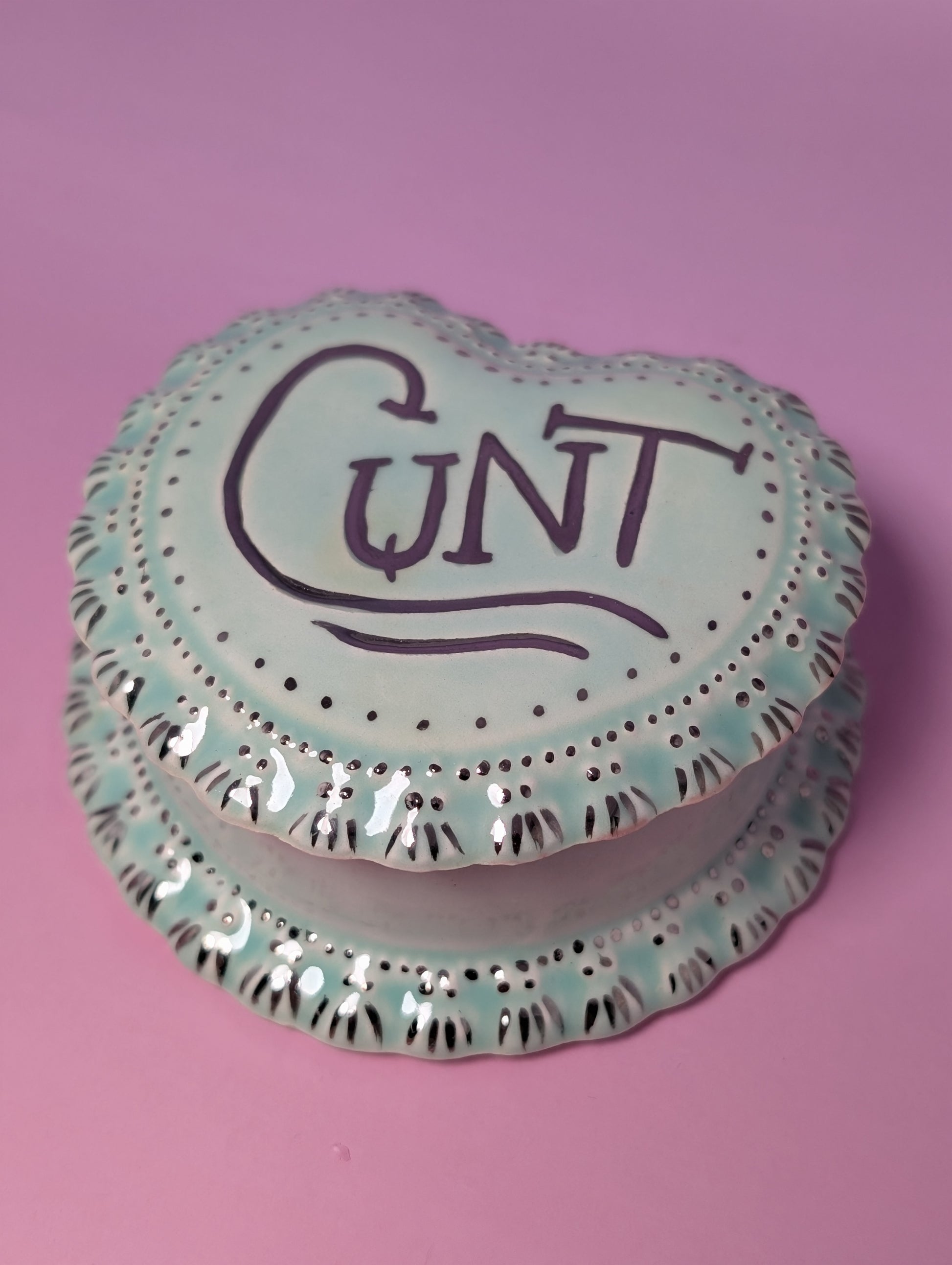 Cunty Frilled Heart Pillbox with Silver Glaze