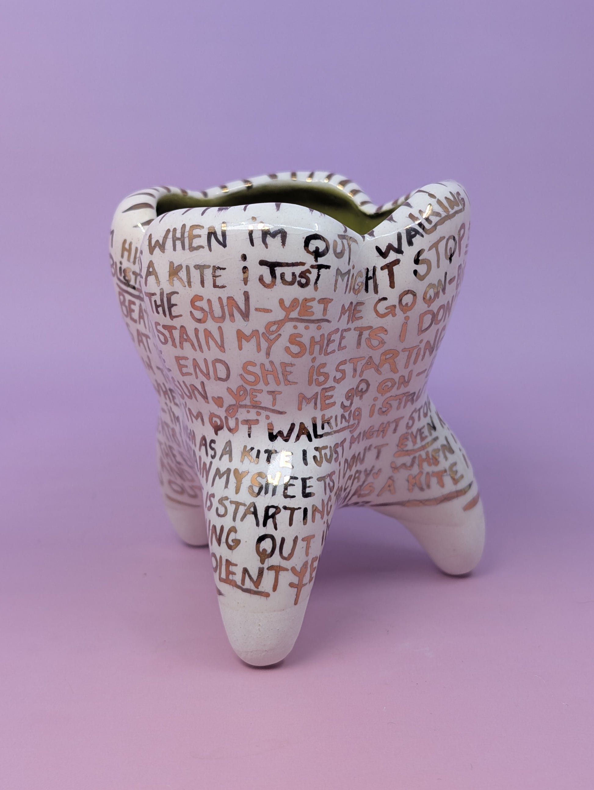 Handpainted Lyrical Molar Vase with Real Gold Glaze