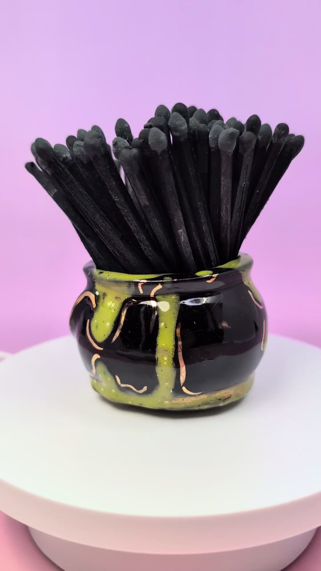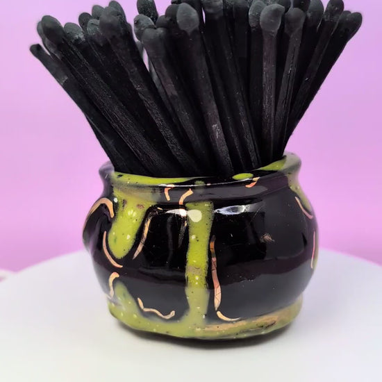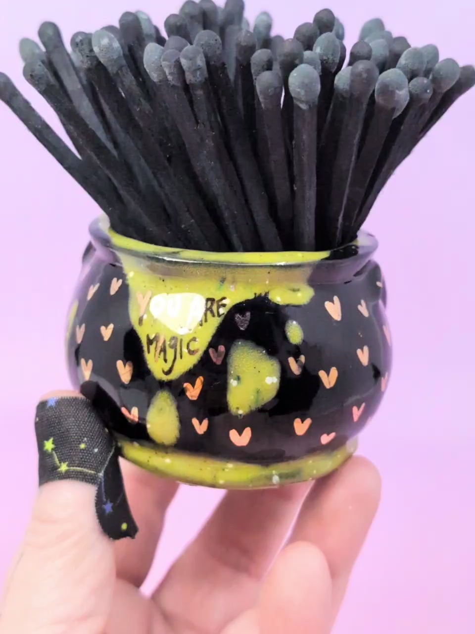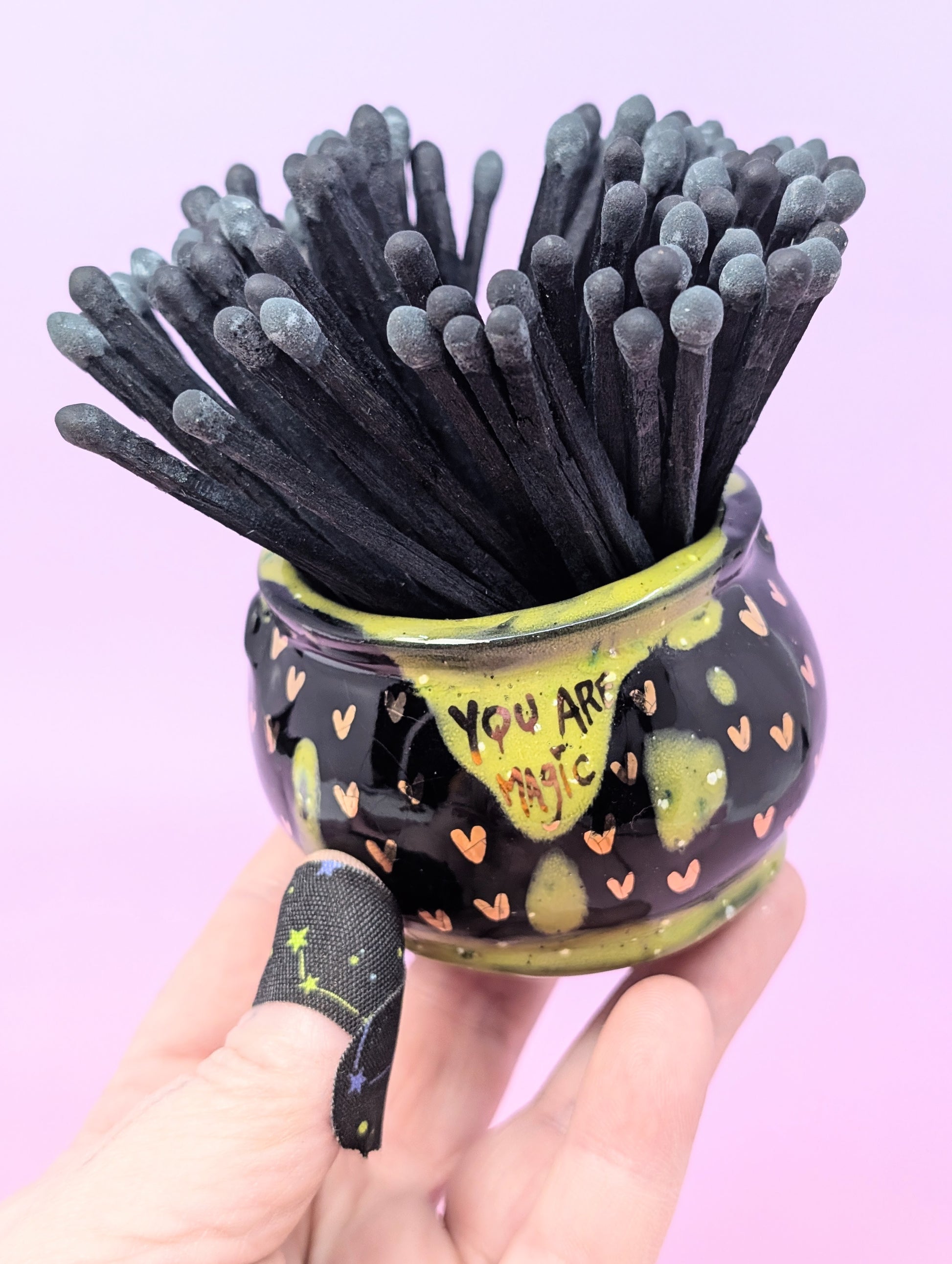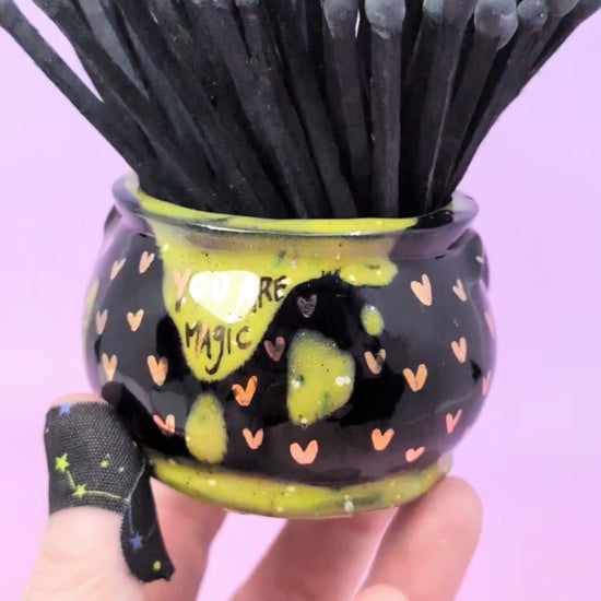 "You Are Magic" Cauldron Matchstick Holder with Gold Glaze